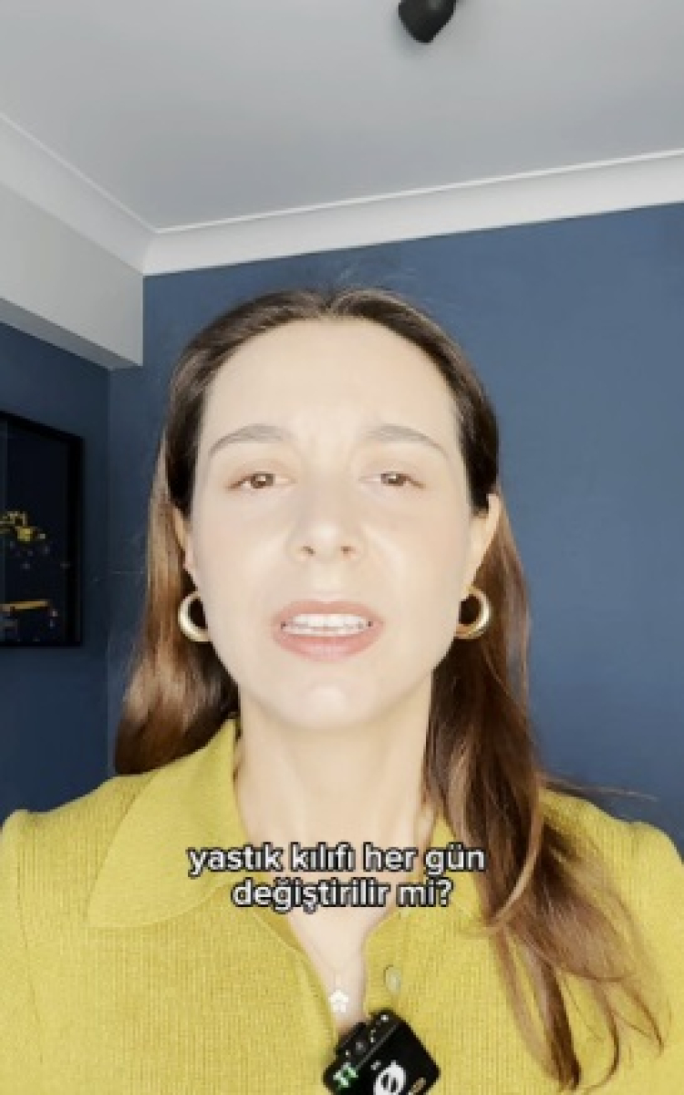 Her gün yastık kılıfını değiştirdiğini söyleyen Düzdemir'e bunun nedenini soran kullanıcılar için çektiği video adeta gündem yarattı. Düzdemir, ''Bir hafta boyunca değiştirilmeden kullanılan yastık kılıfı meğer mikrop yuvasına dönüşüyor. Ölü deri hücreleri, ter, tükürük ve daha fazlası yatağınızda mikropların büyümesine çok uygun bir ortam oluşturabilir. Bir hafta yıkanmamış bir yataktan alınan örnekler üzerinde yapılan laboratuvar çalışmalarına göre, bu örneklerde bir klozet kapağına kıyasla 17 bin kat daha fazla bakteri kolonisi bulunuyor.'' dedi.