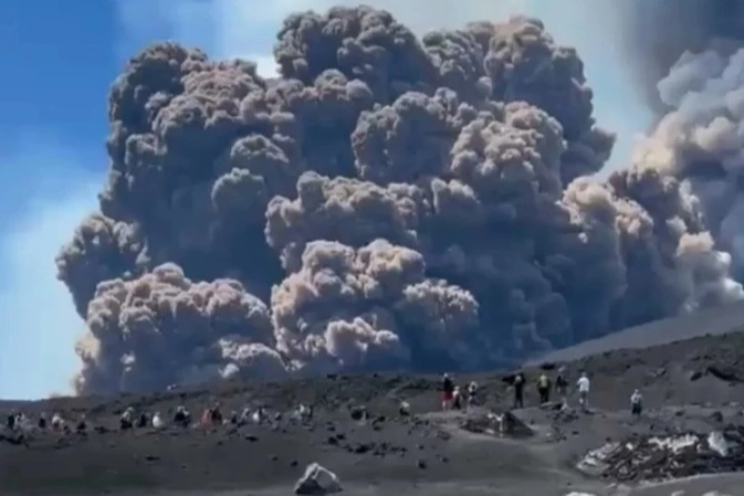 İtalya'daki Etna Yanardağı'nın patlaması sonucu çevrede korku dolu anlar yaşandı. O anlar turistler tarafından kaydedilip sosyal medyada paylaşıldı; videoda karanlık bulutların yükseldiği ve turistlerin panik içinde kaçıştığı gözlemlendi.