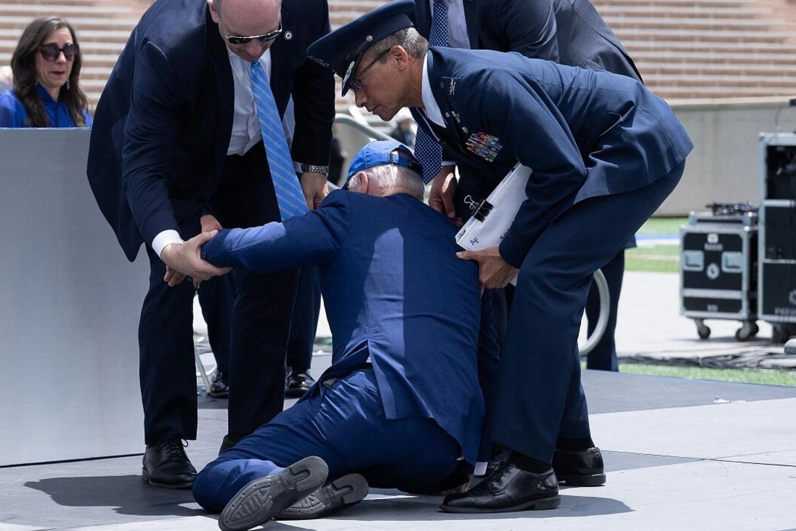 Daha önce çok kez düşen Biden yine skandal görüntülere imza attı. ABD Başkanı Biden’nın yere düştüğü görüntülere bir yenisi daha eklendi. Biden, Colorado'daki ABD Hava Kuvvetleri Akademisi mezuniyet töreninde yaptığı konuşmanın sonrasında, öğrencilere diplomalarını takdim etti. 80 yaşındaki Biden’nın ayağı kum torbasına takıldı. Biden dengesini kaybetti ve yere düştü. Töreni izlemeye gelenlerin çığlıkları arasında yerden kalkmaya çalışan Biden'a korumaları yardım etti. Daha önce uçağa binerken merdivenlerden ve bisikletten düşen Biden'ın, ayrıca basın mensuplarının karşısında konuştuktan sonra kürsüdeki garip hareketleri de gündem olmuştu.