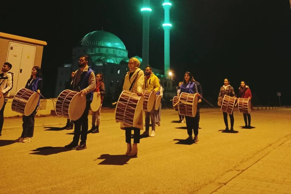 "Vur davulcu davula sevdiğim kalksın sahura, aşka gelmedi bari gelsin imana" manisiyle öğrencilerin de eşlik ettiği sahur gösterisi, hep birlikte yapılan sahurla sona erdi.