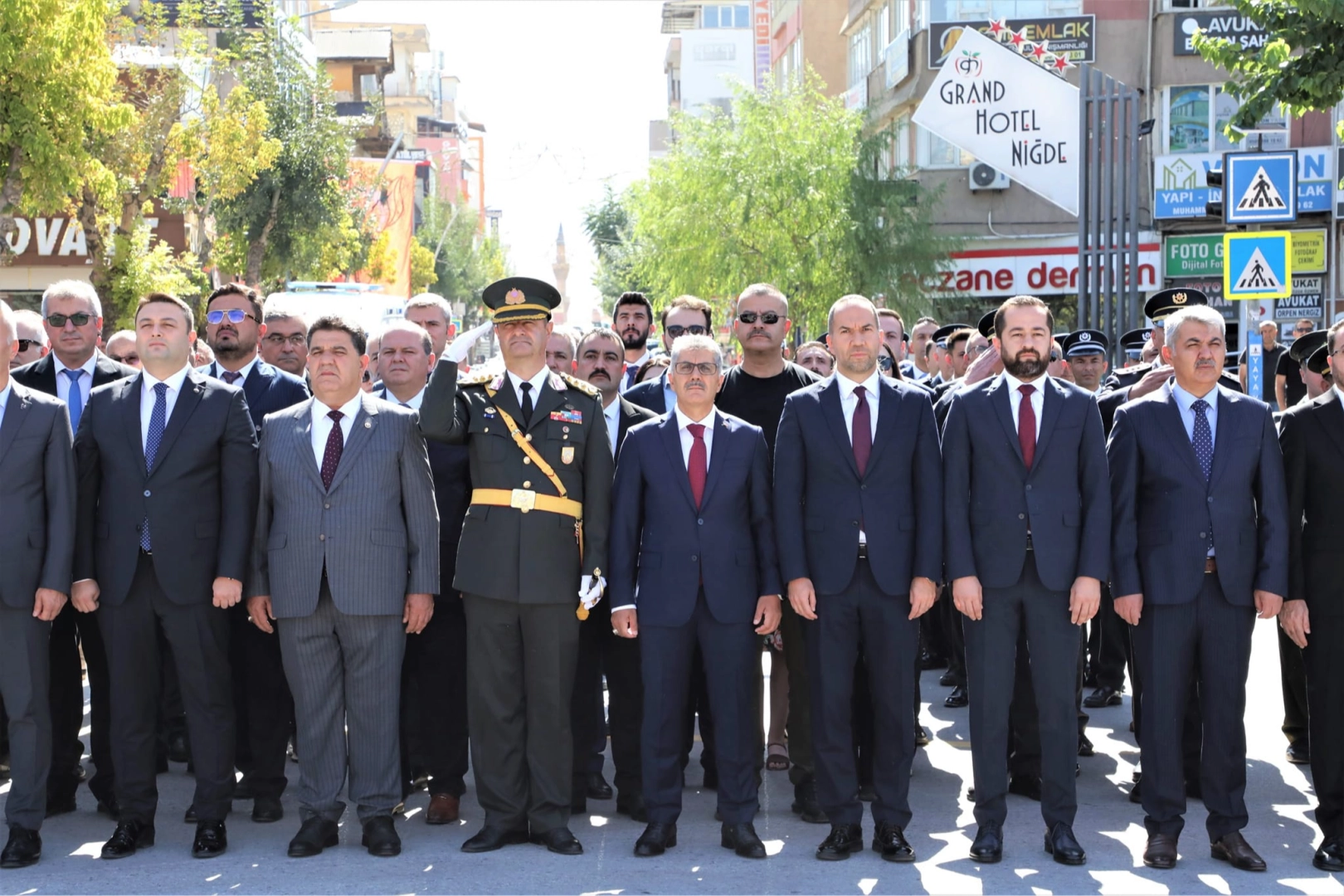Tarihin en önemli olaylarından birisi olan Büyük Taarruz'un kutlamaları, Niğde Ömer Halisdemir Meydanı'nda bulunan Atatürk Anıtı'na çelenk sunulmasıyla başladı. Atatürk Anıtı'na Niğde Valiliği, Niğde Belediyesi, Garnizon Komutanlığı siyasi partiler ve STK’ların çelenk sunmasının ardından saygı duruşunda bulunuldu ardından İstiklal Marşı okundu. Niğde Valisi Cahit Çelik, Belediye Başkanı Emrah Özdemir ve Garnizon Komutanı Albay Özcan Yetiş, alanda bulunanların bayramını kutladı. 30 Ağustos'un önemi hakkındaki konuşmasında tarihte eşine az rastlanır bir zafer olduğunun altını çizen Üsteğmen Gülsever Tohan: ''Asil Türk milleti ve kahraman ordusuyla birlikte varlığına ve vatanına kastedenlere karşı 102 yıl önce bugün, kahramanlık ve şeref dolu tarihinden aldığı kudretiyle yeniden dirilerek topyekun bir varoluş mücadelesi sonucunda eşine az rastlanır bir zafer kazanmıştır. Bağımsızlığına kasteden işgal kuvvetleri karşısında Türk ordusunun ortaya koyduğu eşsiz bir eser olan bu zaferin her vbir safhası tek tek düşünülmüş, hazırlanılmış ve yönetilmiştir. İşgal güçleri girdikleri her yerde kinlerini kusarcasına kadınımıza, yaşlılarımıza ve çocuklarımıza, dünyada eşine az rastlanır işkence, zulüm ve hakaretlerde bulunmuşlardır. İşte böylesine umutsuz görünen, üzerimizde kara bulutların dolaştığı bir ortamda Mustafa Kemal Atatürk ve onun dava arkadaşlığı bağımsızlık meşalesini yakarak ya istiklal ya ölüm parolasıyla aydınlığa giden yolu aralamışlardır. Başta Ulu Önder Atatürk olmak üzere dava arkadaşları ve aziz şehitlerimiz ile ebediyete irtihal eden gazilerimizi rahmetle anıyor hatıraları önünde bir kez daha saygıyla eğiliyor, şükranlarımızı sunuyoruz" dedi. Meydanda düzenlenen törenin ardından Niğde Valisi Cahit Çelik, valilik makamında tebrikleri kabul etti. 30 Ağustos Zafer Bayramı için düzenlenen kutlama etkinlikleri Niğde Öğretmenevinde düzenlenen program ile devam etti. Kutlamalar, akşam saat 20.00'da düzenlenecek olan fener alayı ile son bulacak.