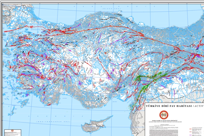 MTA tarafından güncellenmiş haritaya göre, Türkiye'de 485 diri fay bulunuyor. Fay üstünde 45 il ve 110 ilçe yer alıyor.