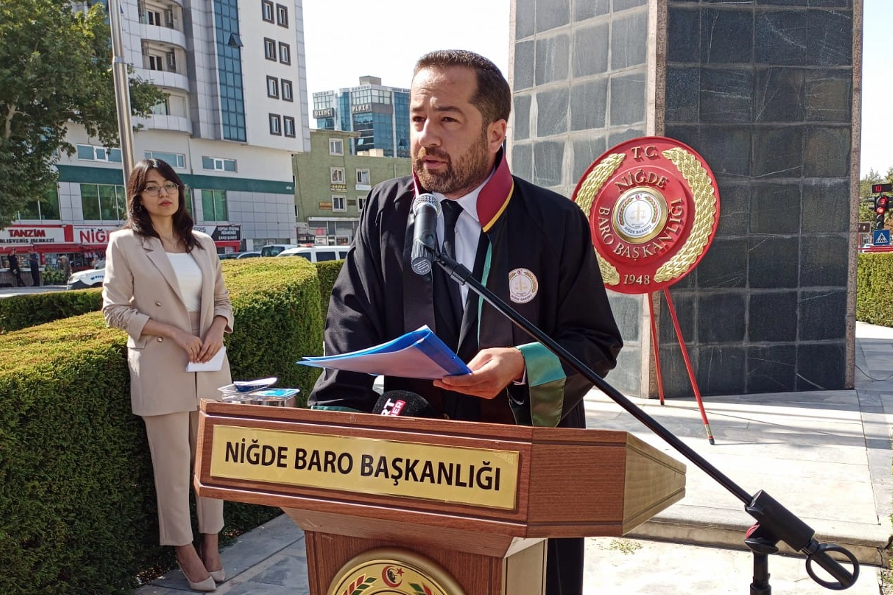 Niğde Baro Başkanı Emin Alper Öztürk Niğde Cumhuriyet Meydanında yaptığı basın açıklamasında şunları söyledi;