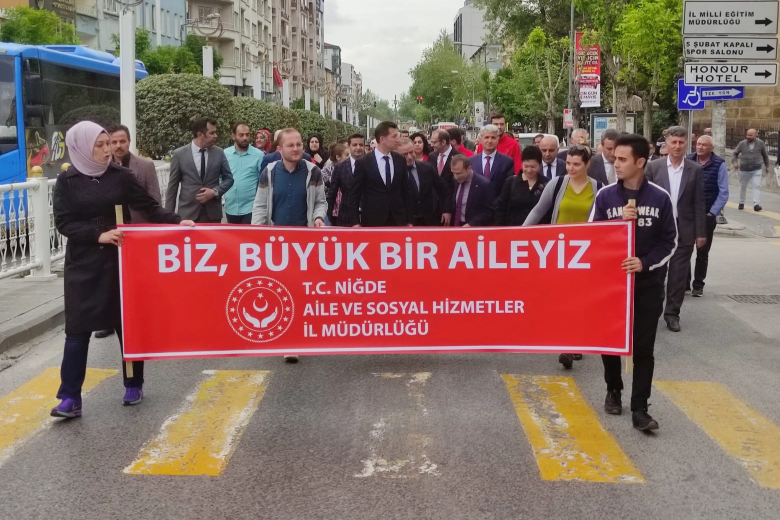Kutlamalar kapsamında Niğde merkez Dışarı Cami önünden valilik binasına kadar farkındalık yürüyüşü gerçekleştirildi.