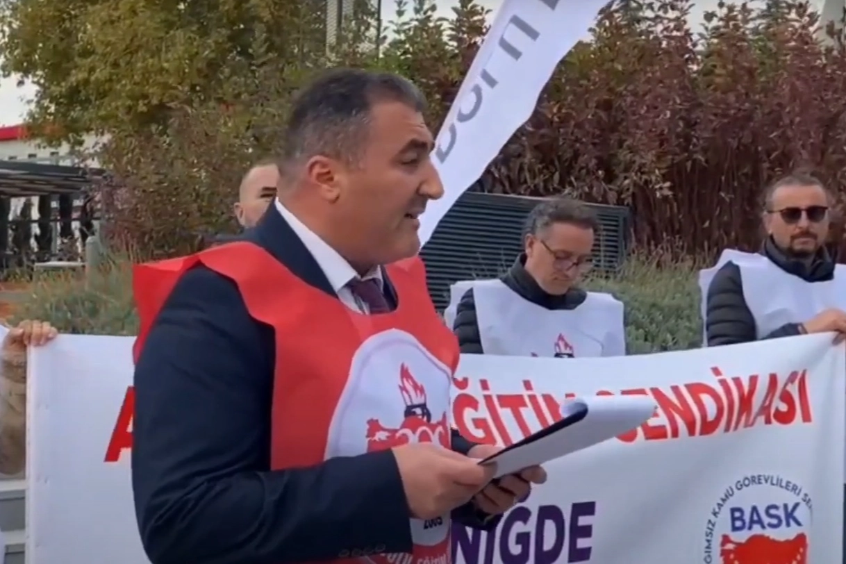Üyelerin katılımıyla yapılan basın açıklamasında konuşan Anadolu Eğitim Sendikası Niğde İl Başkanı Hüseyin Akgümüş,