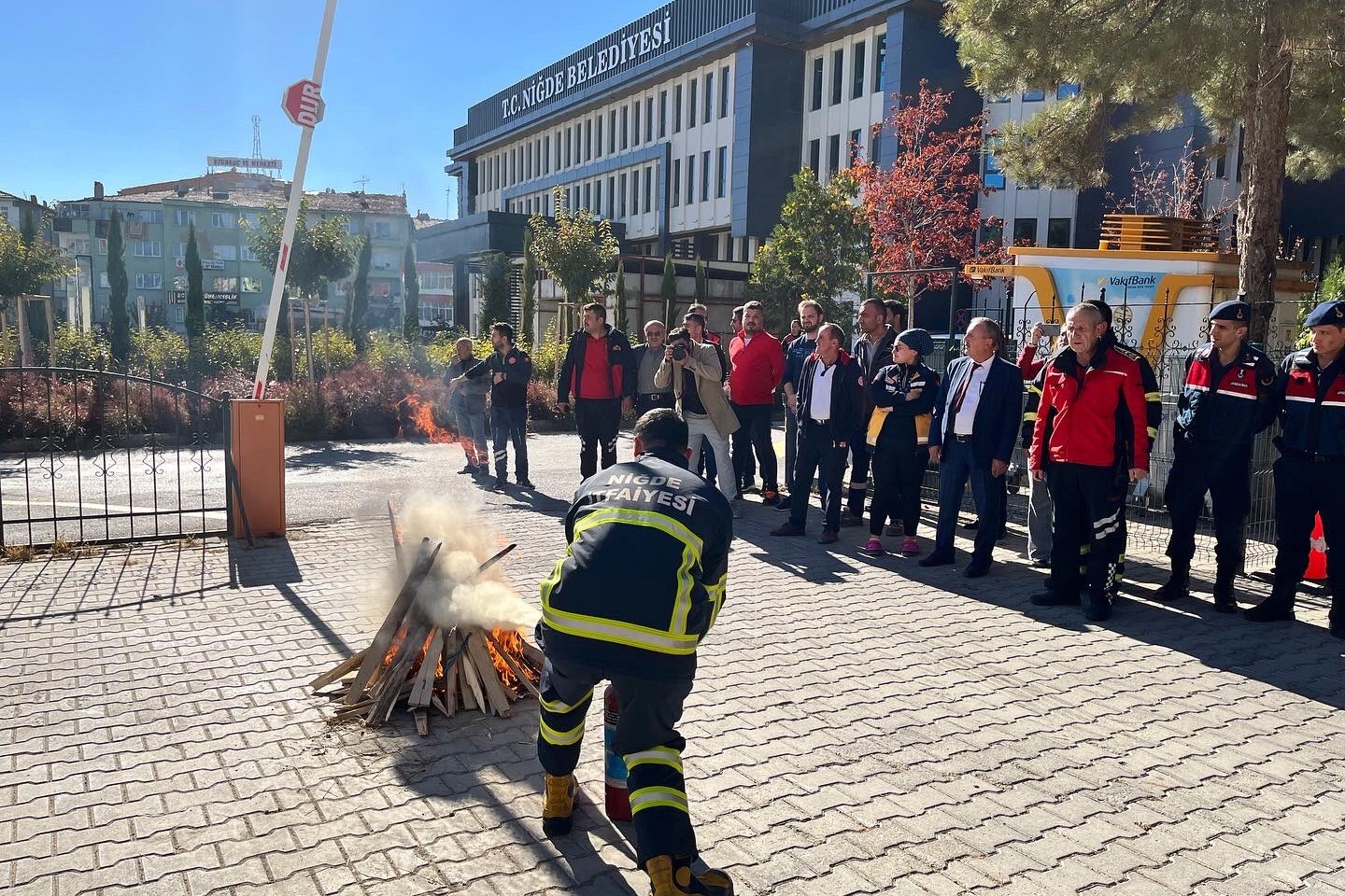 Çok sayıda personelin katıldığı tatbikatla birlikte olası yangın durumunda gerekli önlemler tecrübe edilmiş oldu.