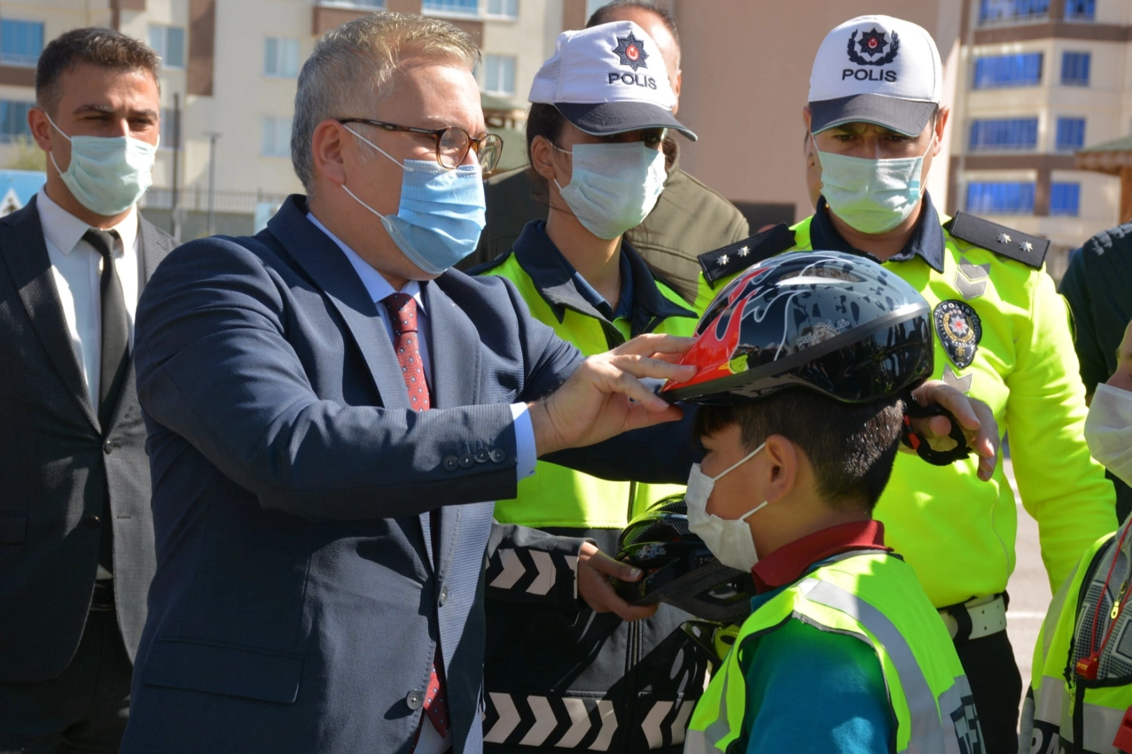 "Sevdikleriniz İçin Kaskınızı Takın" projesi kapsamında bisiklet kullanan öğrenciler ile motorsiklet kullanıcılarına kask dağıtıldı.
