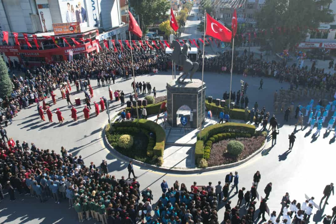 Niğde Cumhuriyet Meydanında düzenlenen etkinliklerde ilk olarak Niğde Valisi Mustafa Koç, Niğde Belediye Başkanı Emrah Özdemir halkı ve öğrencileri selamladı. İstiklal Marşının okunmasının ardından günün anlam ve önemine binaen cumhuriyet şiirini okundu. Folklor gösterileri, komando gösterisi ile okul öğrencilerinin oluşturduğu bando takımı eşliğinde yürüyüş korteji yapıldıktan sonra Niğde Belediyesi mehteran takımı da meydanda sahne aldı. 29 Ekim Cumhuriyet Bayramı etkinlikleri akşam 19.30'da yapılacak fener alayı yürüyüşü ve valilik otoparkında yapılacak konserle son bulacak.