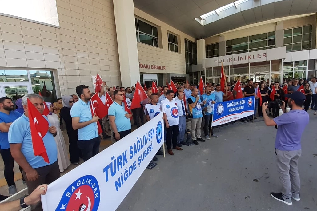 Sağlık Sen ve Türk Sağlık Sen il başkanları yaptıkları ortak açıklamada özetle şunları söylediler. Sağlık Sen Niğde İl Başkanı Ebuzer Doğan; "Bugün burada dün itibariyle öksüz kalan iki çocuk, yalnız kalan bir eş için toplandık. Hayatını mesleğine adamış bir hekimimizi anmak için buradayız. Şifa veren ele vefa verilsin istiyoruz. Belki bazıları 15 gün önceden randuva aldılar ama burada bir mağduriyet varken diğer taraftan bir ölüm söz konusu. Bunun için bugün ve yarın iş bırakma eylemi yapıyoruz."