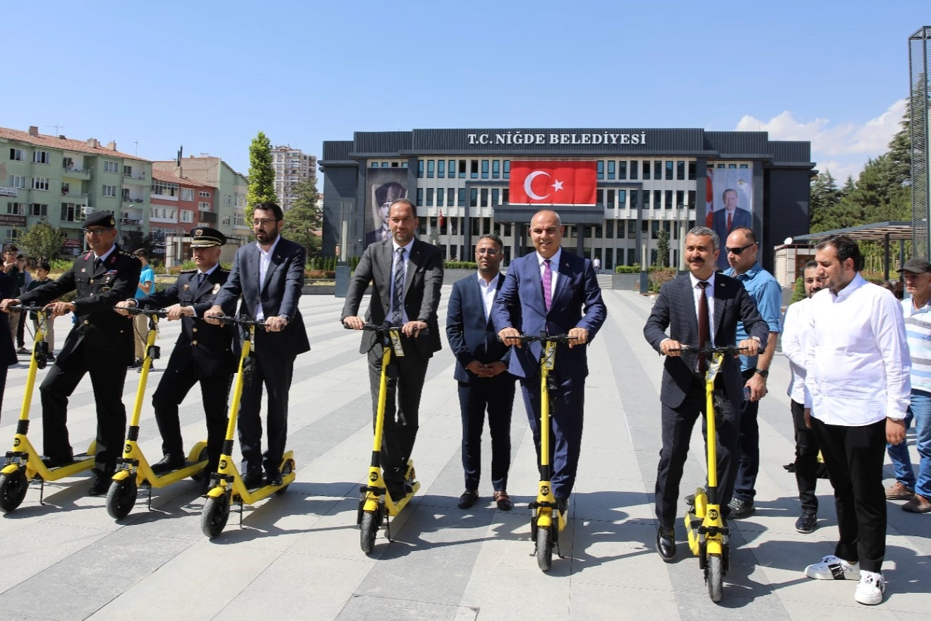 Hizmet verdiği iller arasına Niğde’yi de katan Tazı E-Scooter firmasının faaliyete başlaması protokolün katılımıyla gerçekleştirildi. Şehir içinde 100 adet elektrikli scooter ile hizmet vermeye başlayan sistem hem trafik açısından hem de karbon salınımı açısından önemli faydalar sağlıyor.