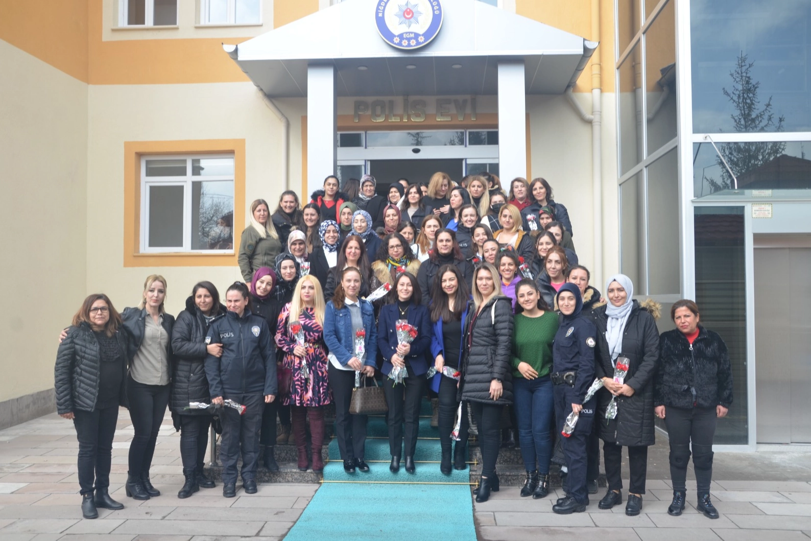 Emniyet Müdürü Özdemir ve eşi Canan Özdemir kahvaltının ardından katılımcılara çiçek vererek 8 Mart Dünya Emekçi Kadınlar Günü’nü kutladılar.