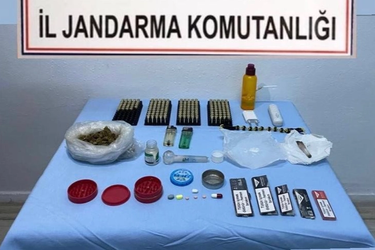 Niğde ili Çiftlik İlçesi Divarlı Kasabasında uyuşturucu madde ticareti yaptığı tespit edilen şahısların ev ve eklentilerinde adli makamlardan alınan arama kararına istinaden 24.09.2022 tarihinde yapılan arama neticesinde; (16) gram metamfetamin, (39) gram kubar esrar, (7) adet uyuşturucu ve uyarıcı hap, (1) adet bong, (1) adet payp, ve (179) adet 7.65 mm tabanca fişeği ele geçirildi.