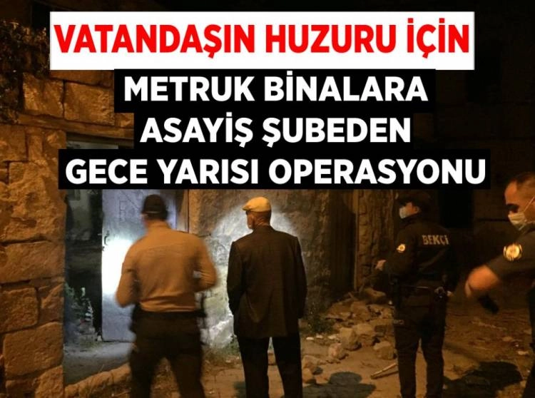 Suç unsurlarının barınağı haline gelen metruk binalarda denetimlerini sıklaştıran emniyet ekipleri vatandaşın huzur ve güvenliği için geceli gündüzlü çalışmalarını sürdürüyor.