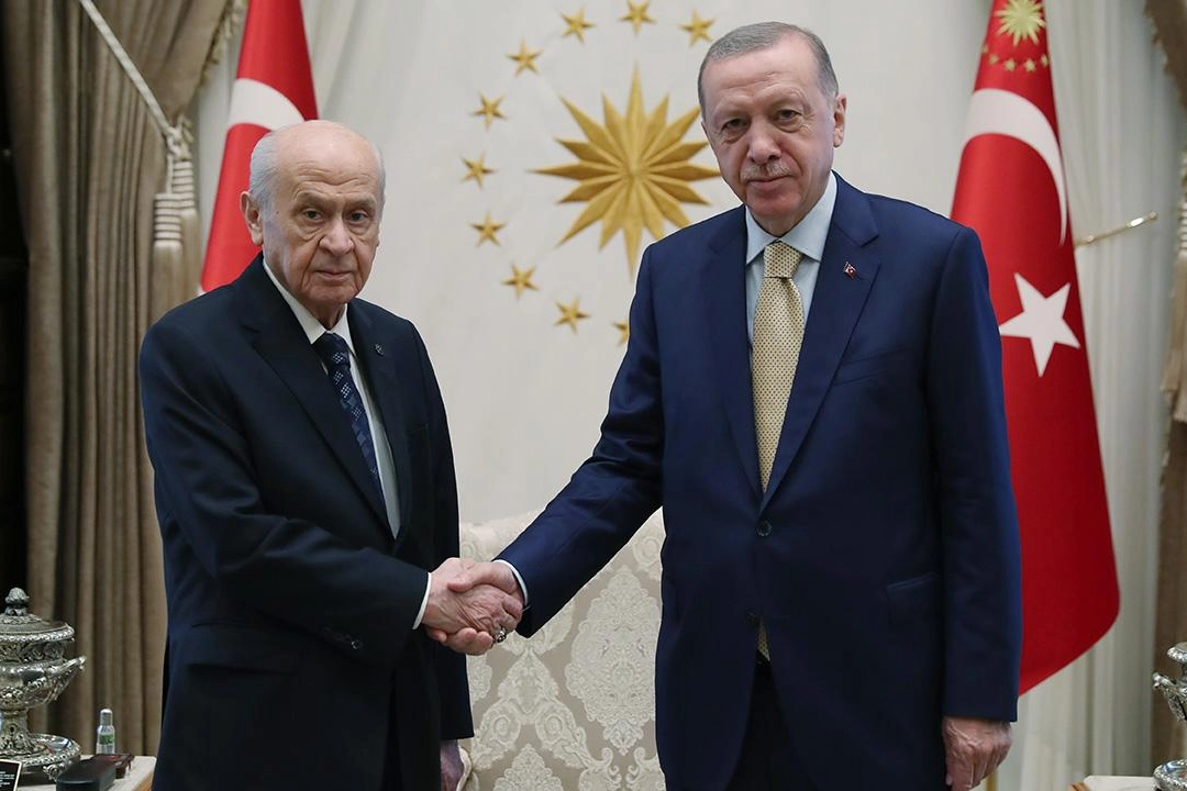 Başkan Erdoğan, MHP genel başkanı Bahçeli'yi 'Devlet Bey Konağı'nda ziyaret etti. Bahçeli'nin evinde düzenlenen görüşmede seçim süreci,meclis çalışmaları, yasal düzenlemeler gibi konuların ele alınması bekleniyor.