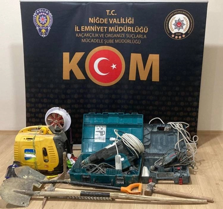 "Müdürlüğümüz Kaçakçılık ve Organize Suçlarla Mücadele Şube Müdürlüğü görevlilerince; Kültür ve tabiat varlıklarının kaçakçılığı ile kültür varlıkları bulmak amacıyla izinsiz kazı faaliyetleri ve izinsiz define araştırma suçlarıyla mücadele kapsamında 10.09.2021 tarihinde gerçekleştirilen operasyonda; Kazı, Sondaj ve Araştırmaya ilişkin yasa hükümlerine aykırı hareket eden 4 (dört) şüpheli suçüstü olarak yakalanmış, şüphelilerin olayda kullanmış olduğu; 1 adet Hilti, 1 adet matkap, 1 adet jeneratör, 1 adet dağcı emniyet kemeri, 1adet gaz maskesi, seyyar kablo, halat ve çeşitli boyutlarda kazma, kürek, balyoz ele geçirilerek suçta kullanılan eşyalara el konulmuştur. Yakalanan 4 (dört) şüpheliye, 2863 Sayılı Kültür ve Tabiat Varlıklarını Koruma Kanununa Muhalefet etmekten yasal işlemler yapılmıştır. Farklı uygarlıklara ev sahipliği yapan İlimizin eski çağlara dayanan tarihi kimliği de göz önüne alınarak, kültür ve tabiat varlıklarının korunmasına yönelik mücadelemiz hassasiyetle sürdürülmektedir."