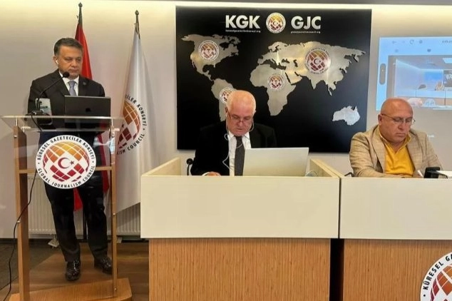 Azerbaycan’ın haklı Karabağ davasının ulusal ve uluslararası kamuoyu nezdinde doğru anlatılması için ülkemizde görev yapan yabancı gazeteciler ile defalarca bölgeye gidildiğini ifade eden Dim, “Geçtiğimiz Nisan ayında Tiflis’te bir çalıştay düzenleyerek Azerbaycanlı ve Ermeni gazetecilerin aynı masada buluşmasına ve barış için ortak metin imzalamalarına KGK olarak öncülük ettik” dedi. Bunu ‘tarihi adım’ olarak nitelendiren Genel Başkan Mehmet Ali Dim, “Geleneksel hale gelen seçilmiş kurullar toplantılarını her yıl Alanya’da yaptık. Geçen Ekim ayında gala gecemize onur konuğu olarak katılan KKTC Cumhurbaşkanı Ersin Tatar’a diplomasi ödülü verdik. Ayrıca, 6 Şubat’ta yaşadığımız yüzyılın felaketi olarak nitelendirilen deprem sonrasında bölgede görev yapan depremzede gazetecilere üyemiz olsun olmasın ayrım yapmadan ayni ve nakdi yardımlar yaptık” diye konuştu.