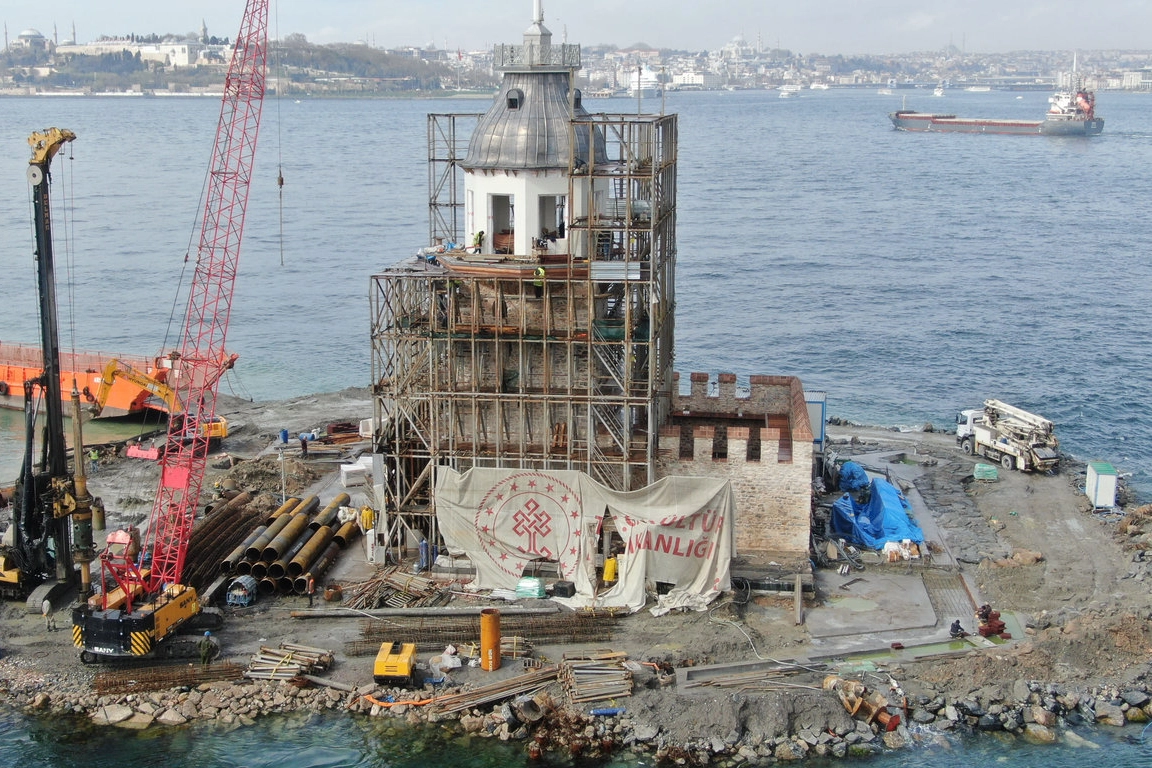 2 bin 500 yıllık tarihe sahip simgesidir. Geçen sene Eylül ayında başlayan restorasyon çalışmalarının mayıs ayı başında bitmesi öngörülüyor. Kaplama ve sonlandırma aşamasında olduğu bildirilen Kız Kulesi’nin son hali drone ile görüntülendi. Restorasyonun yanı sıra olası bir deprem için aynı zamanda güçlendiriliyor.