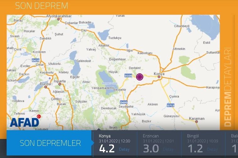 Kandilli Rasathanesi'nden yapılan açıklamaya göre Konya'nın Meram ilçesinde Kızılören mevkiinde 4.1 büyüklüğünde bir deprem meydana geldi. İlk gelen bilgilere göre depremin derinliği 5 kilometre olarak ölçüldü. Depremin saati ise 12.30 olarak açıklandı.