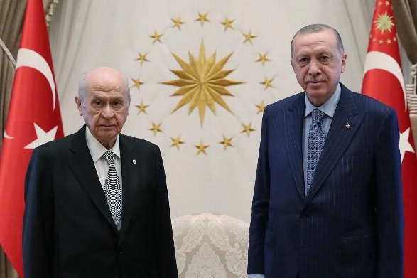 Cumhurbaşkanı Recep Tayyip Erdoğan, MHP Genel Başkanı Devlet Bahçeli’yi Cumhurbaşkanlığı Külliyesi'nde kabul etti.