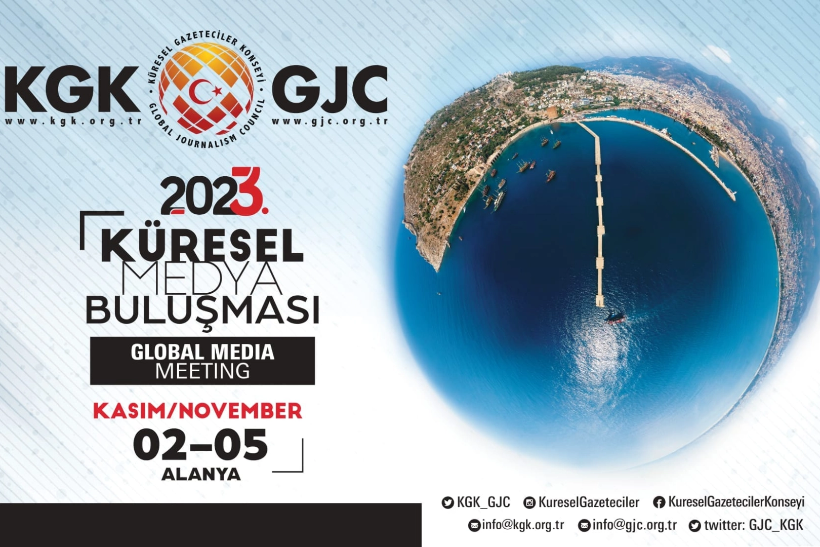 Geleneksel hale gelen ve ilk ikisine de Alanya’nın ev sahipliği yaptığı 3’üncü Küresel Medya Buluşması bir dizi etkinlikten oluşuyor. Türkiye’den KGK üyesi 200’e yakın gazeteci ile 31 ülkeden 50 kadar üye ve konuk gazetecinin katılacağı buluşma kapsamında Alanya’nın tanıtımı için şehrin turistik noktalarına çeşitli geziler de var.