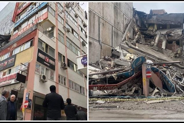 Battalgazi ilçesi Hüseyinbey Mahallesi Atatürk Caddesi'ndeki MHP İl Başkanlığının bulunduğu bina, 6 Şubat'taki depremlerde ağır hasar aldı.