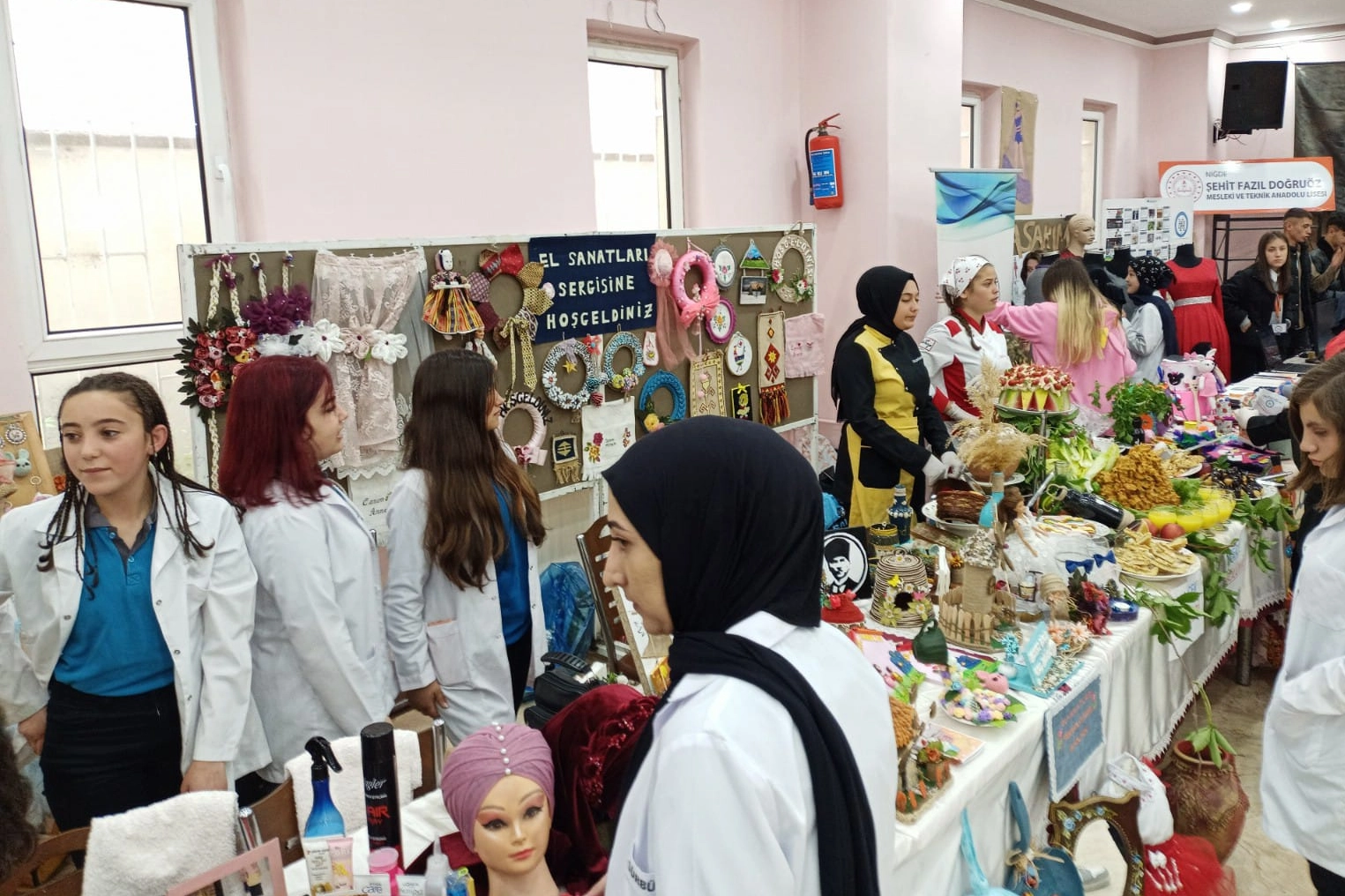 Kurdele kesimiyle açılan fuarda, Niğde'de bulunan meslek liselerinin atölyelerinde hazırlanan ürünlerin yer aldığı stantlar görücüye çıktı.