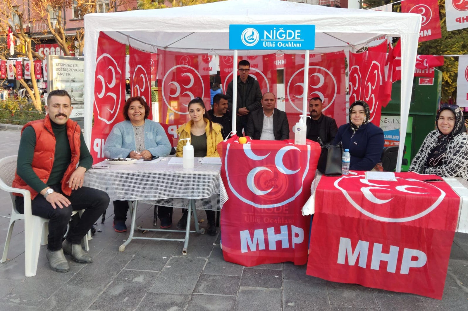 MHP MYK Üyesi Emrullah Türe yaptığı açıklamalarında: “Niğde İl Başkanlığımızın başlatmış olduğu üye kayıt çalışmaları kent meydanında hemşerilerimizin göstermiş oldukları teveccüh ile hız kesmeden devam etmektedir.” dedi.