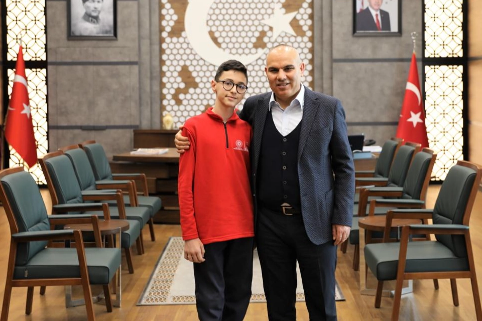 Niğde Valisi Sayın Mustafa Koç, 16. TÜBİTAK 2204-B ortaokul öğrencileri araştırma projeleri yarışmasında öncelikle Sivas’ta düzenlenen bölge finallerinde 1. olarak Türkiye finallerine katılma hakkı kazanan ve ardından Türkiye finallerinde bölgemizi temsil ederek Türkiye üçüncüsü olan Akşemseddin Bilim ve Sanat Merkezi öğrencisi Rüzgâr Egehan Uçan, İl Milli Eğitim Müdürü Halil İbrahim Yaşar, okul müdürü ve danışman öğretmeni makamında ağırladı.