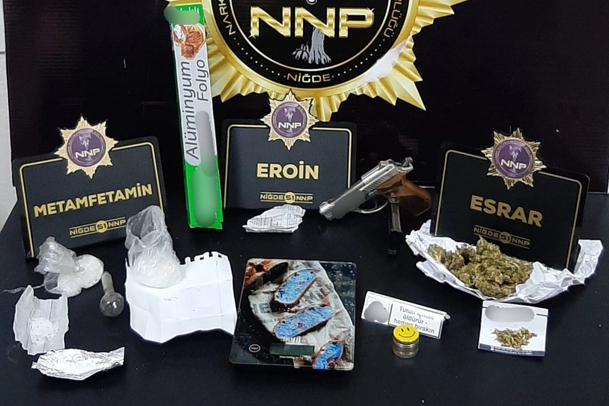 Niğde İl Emniyet Müdürlüğü Narkotik Suçlarla Mücadele Şube Müdürlüğü ekiplerince; uyuşturucunun arzı ile mücadele kapsamında yürütülen çalışmalarda 1-18 Temmuz tarihleri arasında 34 şahıs yakalandı. Şahıslarda yapılan aramalarda; 116,75 gram ağırlığında METAMFETAMİN, 85,27 gram ağırlığında ESRAR, 36,18 gram ağırlığında SENTETİK KANNABİNOİD BONZAİ, 12,94 gram ağırlığında EROİN, 2 adet HASSAS TERAZİ ele geçirildi.
