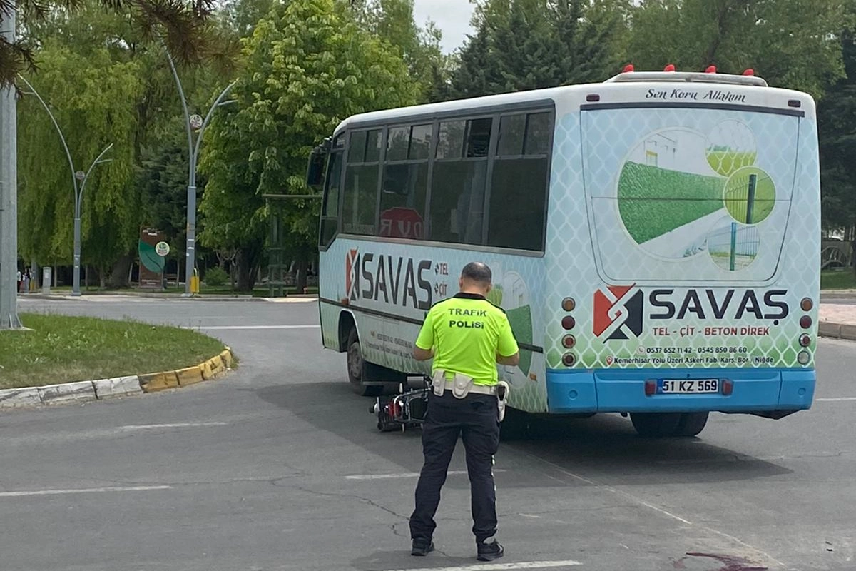 Niğde-Bor yolunda motosiklet sürücüsü, otobüse çarptı. Kazada motosiklet sürücüsü ağır yaralandı. Öğrenilen bilgiye göre Niğde-Bor yolu Bor Terminali kavşağında meydana gelen kazada, motosiklet sürücüsü kontrolünü kaybederek otobüse çarptı. Kazanın ardından bölgeye sağlık ve polis ekipleri sevk edildi. Sğalık ekipleri tarafından motosiklet sürücüsü, ağır yaralı olarak Niğde Ömer Halisdemir Üniversitesi Eğitim ve Araştırma Hastanesi'ne kaldırıldı. Polis, olayla ilgili inceleme başlattı.