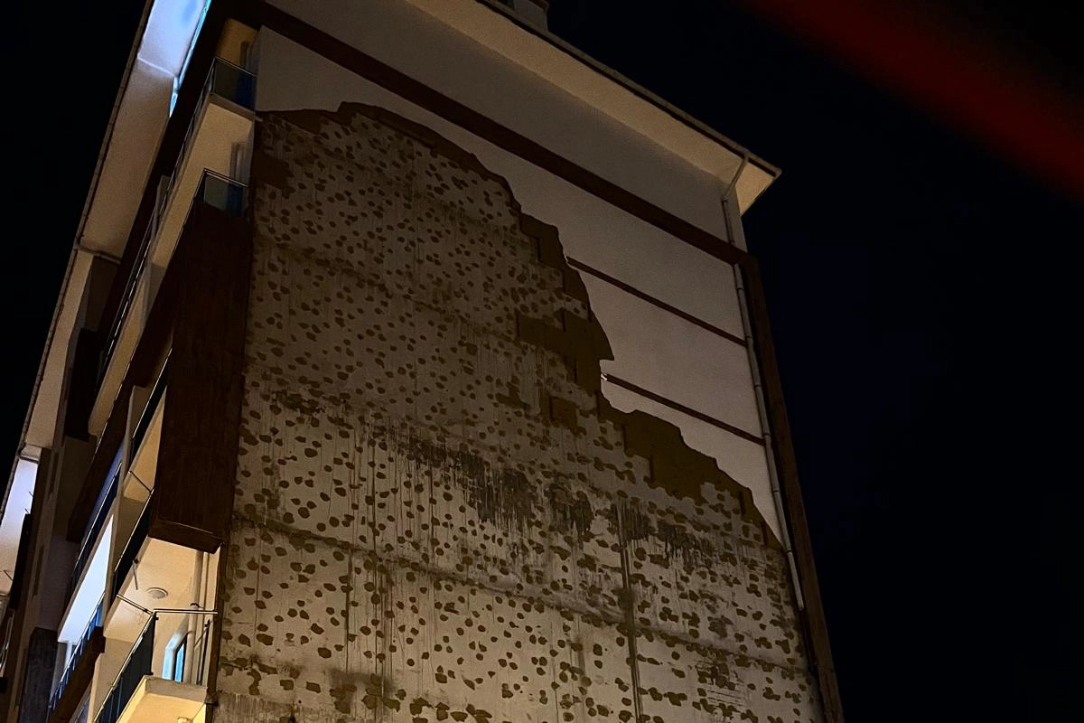 Binadan koparak yere düşen betan yığınları, çitleri devirdi. Yaşanan korkunç olay sırasında ise bina yakınlarından kimsenin olmaması bir felaketin önüne geçti.