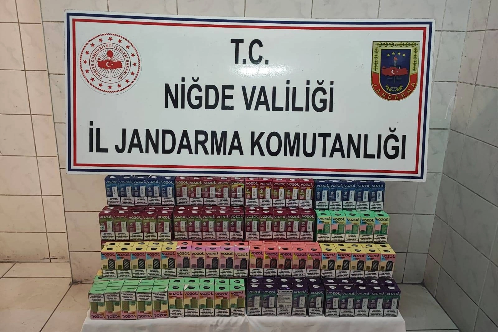 Niğde'de gümrük kaçağı 547 elektronik sigara ele geçirildi. Niğde Valiliğinden yapılan açıklamada: ''İl jandarma Komutanlığı ekipleri, Pınarcık mevkisinde durdurdukları bir araçta yaptığı aramada, 547 elektronik sigara buldu. Gözaltına alınan sürücü hakkında adli işlem başlatıldı.'' ifadelerine yer verildi.