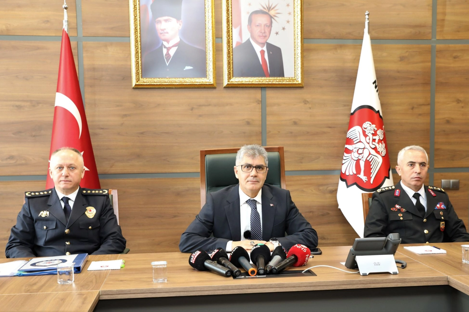 Niğde Valisi Cahit Çelik Başkanlığında Niğde Valiliğinde düzenlenen Güvenlik Bilgilendirme Toplantısı'na, Niğde İl Emniyet Müdür Adnan Özdemir ve Niğde İl Jandarma Komutanı Albay Gürol Okyar katıldı. Toplantıda Niğde'de ocak ve şubat aylarında güvenlik güçleri tarafından gerçekleştirilen operasyonların detayları paylaşıldı. İçişleri Bakanı Ali Yerlikaya'nın talimatı doğrultusunda bundan böyle her ay gerçekleştirilecek olan toplantıda, Niğde Valisi Cahit Çelik şunları söyledi;