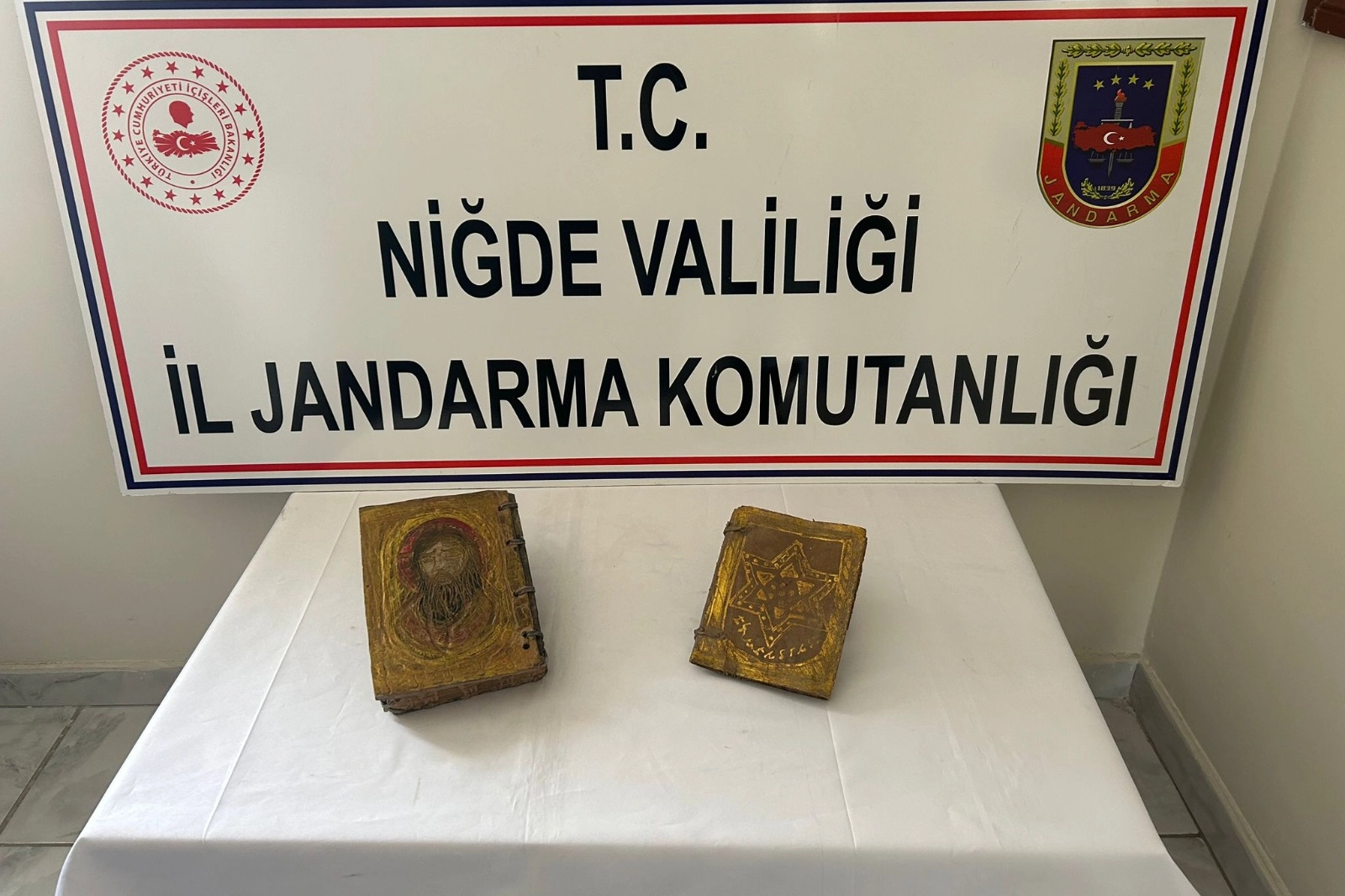 Niğde İl Jandarma Komutanlığı ekipleri tarafından gerçekleştirilen operasyon sonucu 200 bin dolara satılacağı öğrenilen tarihi eser ele geçirdi. Niğde İl Jandarma Komutanlığı ekipleri kaçakçılığa yönelik yürüttüğü operasyonlar kapsamında, Bor ilçesine bağlı Kemerhisar beldesinde kamu görevlisi olduğu belirlenen 2 şüpheli şahsın araçlarında arama yaptı. Yapılan aramada Roma Dönemi’ne ait olduğu, ceylan derisi üzerine yazılmış altın yazmalı bir kitap ele geçirildi. Tarihi eserin piyasa değerinin yaklaşık 200 dolar olduğu belirlendi. Olayda yakalanan şüpheli 2 kamu görevlisi hakkında adli işlemlere başlandı.