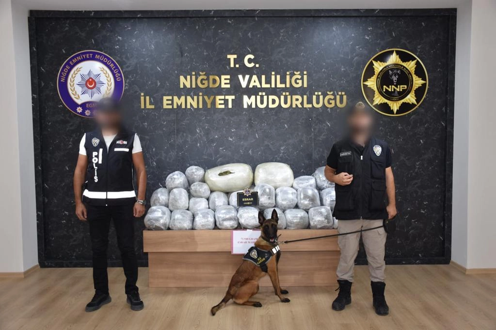 Hassas burunlu narkotik köpeği ile gerçekleştirilen operasyonda, 72 kilo 500 gram Esrar Maddesi ele geçirildi.