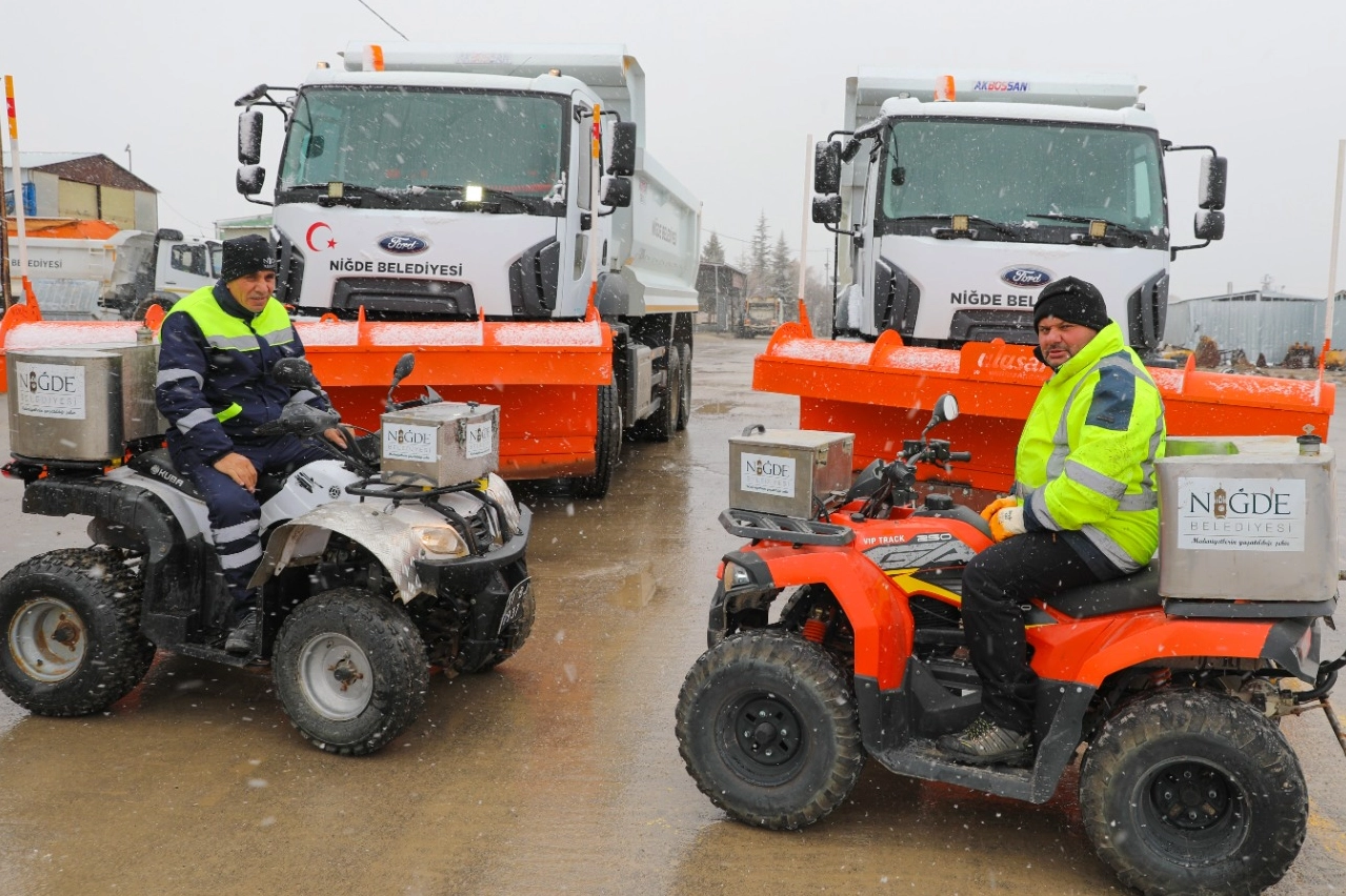 Niğde Belediyesi olarak tüm birimler, araç ve ekipmanları ile 2022-2023 yılı kış sezonuna hazır olduklarını ifade eden Başkan Özdemir, “Kış şartlarında sizlere en güzel hizmeti vermek için gerekli çalışmaları tamamladık” dedi. TÜM ARAÇLAR BAKIMA ALINDI Niğde Belediyesi kış hazırlıklarını tamamladı. Belediye ekipleri, meydana gelebilecek yoğun yağışlar ve soğuk hava koşullarında oluşabilecek olumsuzluklara karşı hazırlıklarını tamamlayıp, kış öncesi tüm araçları bakıma alarak, gerekli tüm ihtiyaçları ise hazır hale getirdi. BUZLANMA İÇİN SOLÜSYON VE TUZ STOĞU YAPILDI Kış aylarının getireceği problemleri önlemek amacıyla gerekli hazırlıkları tamamlayıp ekipmanlarını güçlendiren Niğde Belediyesi olası kar ve buzlanma için de gerekli tuz ve solüsyon stoku oluşturdu. EKİPLER 24 SAAT GÖREV BAŞINDA Niğde’de, kar yağışı ve buzlanmanın hayatı olumsuz etkilememesi için 24 saat esasına göre çalışacak personeller, iş makinası, tuz aracı, kar küreme ve tuz serpme aracı, 24 saat hizmet verecek. Karla mücadele için oluşturulan ekipler, 24 saat esasına göre görev yapacak. TÜM BİRİMLER KOORDİNASYON İÇİNDE Tüm birimlerimiz koordinasyon içinde üstüne düşen vazifeyi yapmaya hazır diyen Niğde Belediye Başkanı Emrah Özdemir; “Ekiplerimiz sahada uyum içinde çalışacaklar, Fen İşlerimiz karda yolları açarken, Park ve Bahçeler müdürlüğümüz zarar gören ağaçlara ve parklara müdahale edecek. 7/24 esasına göre çalışan ekiplerimiz hayatın aksamaması için görevi başında olacak. Ben ve arkadaşlarım, yüzlerce personelimiz Niğdeli hemşerilerimizin hizmetinde olacağız. Hemşerilerimizin kışı daha rahat geçirmesi için elimizden geleni yapacağız” diye konuştu.