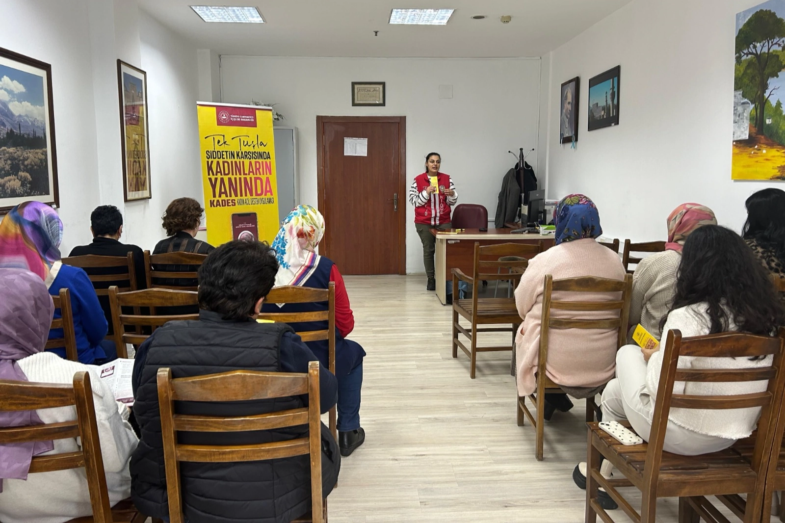 Niğde İl Emniyet Müdürlüğü Asayiş Şube Müdürlüğü Aile İçi ve Kadına Karşı Şiddetle Mücadele Büro Amirliği ekiplerince yapılan Önleyici Faaliyet/Bilgilendirme çalışmaları kapsamında; “KADES” uygulamasının kullanımı, farkındalık ve bilinçlendirme projesi kapsamında Niğde Kültür Müdürlüğü’nde görevli kadın personele yönelik uygulamanın amacı ve nasıl indirilip kullanılacağı konusunda bilgilendirme çalışması yapılarak, broşür dağıtımı yapıldı.