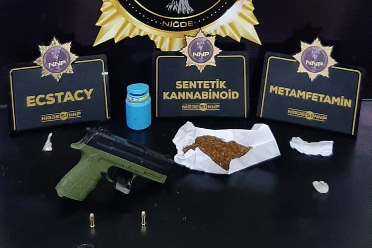 Operasyonda; 147,79 gr. metamfetamin, 28,21 gr. sentetik kannobinoid (Bonzai), 0,9 gr. esrar, 1 adet ecstacy, 10 adet captagon maddesi, 2 adet uyuşturucu kullanma aparatı, 1 adet tabanca ve 2 adet fişek ele geçirildi.
