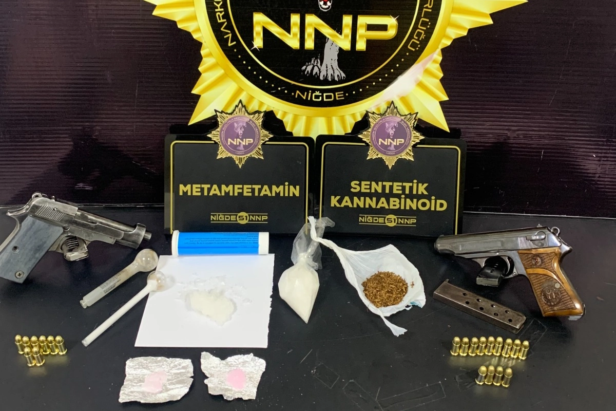 Niğde Yeşilgölcük kasabasında uyuşturucu ve uyarıcı madde kullanan ve sattığı tespit edilen 4 şüpheli hakkında yasal işlem başlatıldı. Şüphelilerin aracından 38 gr kubar esrar, 2 adet ruhsatsız tabanca, 5 adet tabanca şarjörü, 55 adet tabanca fişeği, ele geçirildi. Ele geçirilen maddelerin ardından 4 şüpheli şahsın tutuklanarak Niğde Kapalı Ceza İnfaz Kurumuna teslim edildi.