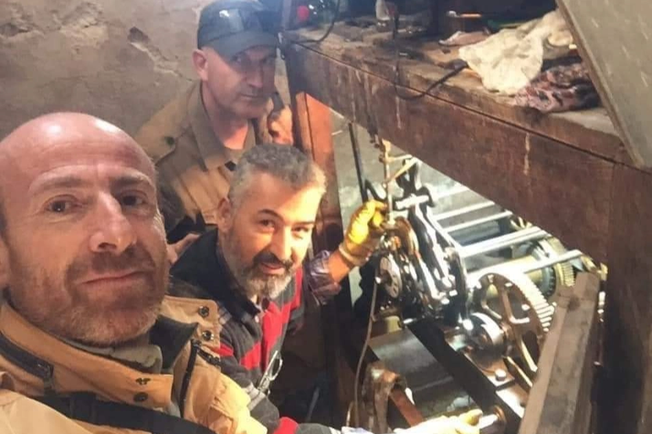 Saatinin yeniden çalışması için ustalar dar alanda çalışmalarını sürdürüyor.