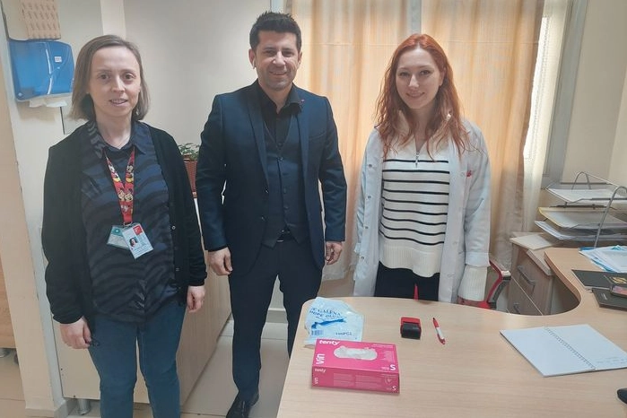 Hastane Başhekimi Dr. Öğr. Üyesi Yakup Çetinkaya ve Başhekim Yardımcısı Dr. Öğr. Üyesi Kader Zeybek Aydoğan, Polikliniğinde yeni başlayan hekime ziyarette bulunarak başarılar diledi. Vatandaşlara '' 182'yi arayıp veya https://www.mhrs.gov.tr/Vatandas/ adresinden Hastanemizden Seçtiğiniz Doktorumuza Randevu Alabilirsiniz.'' şeklinde mesajını iletti.