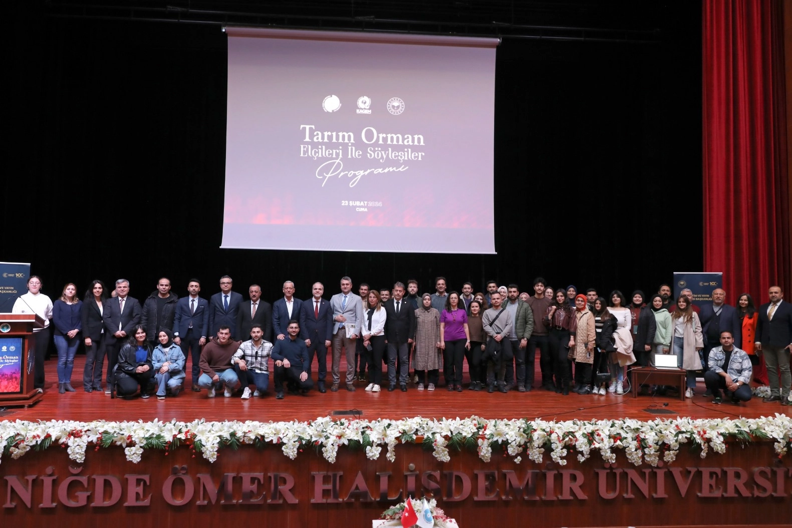 Şehit Ömer Halisdemir Kongre ve Kültür Merkezinde düzenlenen programa Niğde Ömer Halisdemir Üniversitesi Rektörü Prof. Dr. Hasan Uslu, Rektör Yardımcıları Prof. Dr. Recep Çiçek ve Prof. Dr. Ersin Aydın, Genel Sekreter Vekili Abdulgani Özkan, Tarım ve Orman Bakanlığı Eğitim ve Yayın Dairesi Başkanlığı Koordinatörü Mahmut Göktaş, il protokolü, üniversitenin akademik ve idari kadrosunun yanında çok sayıda öğrenci katıldı. Ayrıca Tarım ve Orman Bakanlığı Eğitim ve Yayın Dairesi Başkanı Dr. Bülent Kahraman Çolakoğlu Zoom üzerinden canlı bağlantı ile katıldı. Program T.C. Tarım ve Orman Bakanlığının düzenlediği fotoğraf yarışmasında derece alan fotoğrafların fuaye alanındaki sergisinin gezilmesiyle başladı. Akabinde program saygı duruşu ve İstiklal Marşı’nın okunması ve açış konuşmalarıyla devam etti. “Devlet Üniversiteleri Arasında Tüm Bölümlerinde Yüzde Yüz İngilizce Eğitimin Verildiği Tek Fakülte NÖHÜ’de” Programda konuşma yapan Rektör Prof. Dr. Hasan Uslu, Türkiye’deki devlet üniversiteleri arasında tarım alanında tüm bölümlerinde yüzde 100 İngilizce eğitimin verildiği tek fakültenin Üniversitemizde olduğunu belirtti. Ayrıca içinde bulunduğumuz bahar döneminde öğrenci alarak bu alanda lisansüstü eğitime başlayan Türkiye’nin ilk ve tek Dijital Tarım Tezli Yüksek Lisans Programı’nın da Niğde Ömer Halisdemir Üniversitesinde olduğunu vurgulayan Rektör Uslu, tarım ve gıdanın Üniversitemizin öncelikli alanlarından biri olduğunu ifade etti. Üniversitemizin 2023 TÜBİTAK Üniversitelerin Alan Bazında Yetkinlik Analizi Raporu’na göre Tarım, Gıda ve Hayvancılık alanında “Bitki Koruma” çalışmalarında hacim ve kalite ortalaması bakımından Türkiye’deki 208 üniversite arasında birinci sırada yer aldığını hatırlatan Rektör Uslu, konuşmasında Üniversitemiz Ayhan Şahenk Tarımsal Uygulama ve Araştırma Merkezinin faaliyetleri hakkında bilgiler de verdi. Rektör Uslu konuşmasının sonunda öğrencilerimize önemli bilgiler verilecek bu programın düzenlenmesinde başta Tarım ve Orman Bakanlığımız olmak üzere emeği geçenlere teşekkür ederek konuşmasını sonlandırdı.