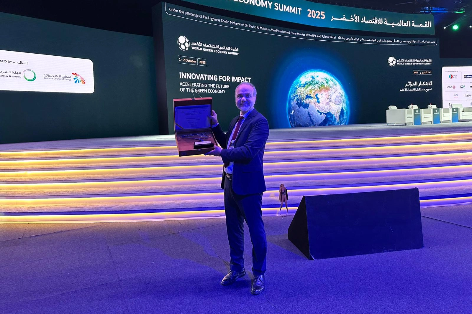 Ödül töreni, Dubai Yüksek Enerji Konseyi ev sahipliğinde Dubai Dünya Ticaret Merkezi’nde 2025 Dünya Yeşil Ekonomi Zirvesi’nde (World Green Economy Summit) gerçekleştirildi. Törene, BAE Başbakanı Muhammed bin Raşid Âl-i Mektum, BAE Enerji Bakanı Suhail bin Mohamed Al Mazroui, BAE İklim Değişikliği ve Çevre Bakanı Amna Al Dahak Al Shamsı’nın katıldığı programa NÖHÜ2yü temsilen Rektör Prof. Dr. Hasan Uslu ve Prof. Dr. T. Nejat Veziroğlu Temiz Enerji Uygulama ve Araştırma Merkezi Müdürü Prof. Dr. Bora Timurkutluk katıldı. NÖHÜ'nün “Uygulamalı Araştırma ve Ürün Geliştirme” kategorisinde almaya hak kazandığı ödül, Rektör Prof. Dr. Hasan Uslu’ya takdim edildi.