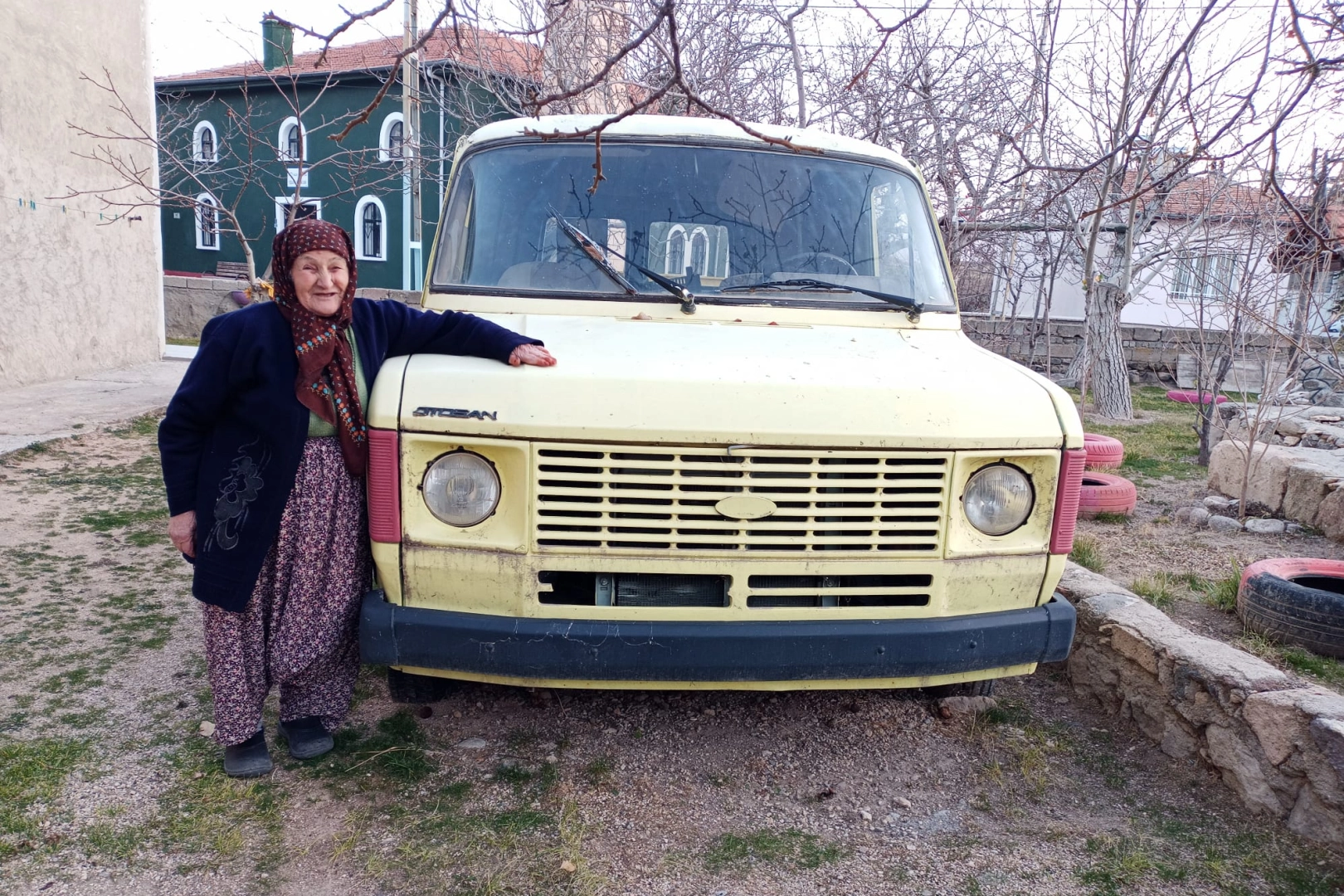 Sarı rengiyle evin bahçesinde yer alan minibüs, hem hikayesi hem görsel bütünlüğüyle görenleri hayran bırakıyor. Köy sakinlerinin Ayten teyzesi, eşinden yadigar minibüsün alıcısı olduğunu ancak satmakdıklarını da ekliyor..