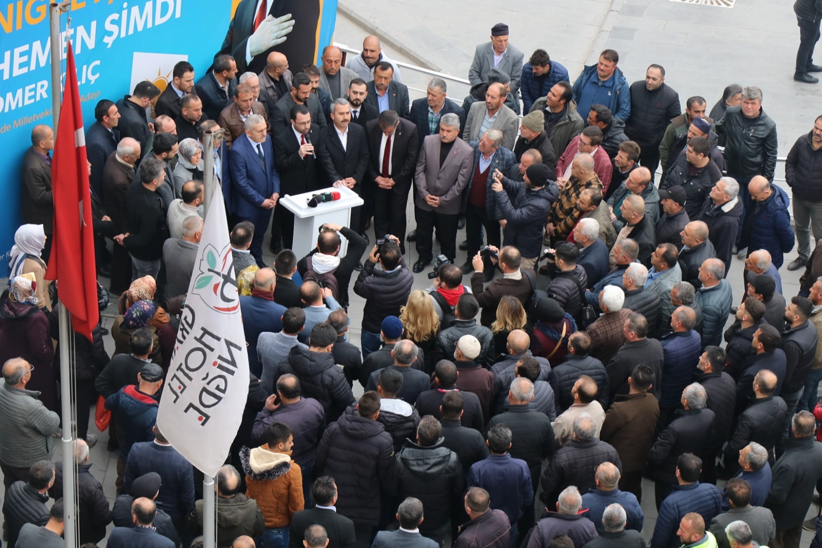Ak Parti Niğde İl Başkanlığı Binası önünde yapılan aday adaylığı açıklamasına partililer yoğun ilgi gösterdi.