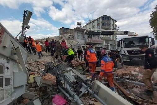 Boş olmadığı belirtilen binanın enkaz yığınları içerisinde arama- kurtarma çalışmaları başlatıldı.