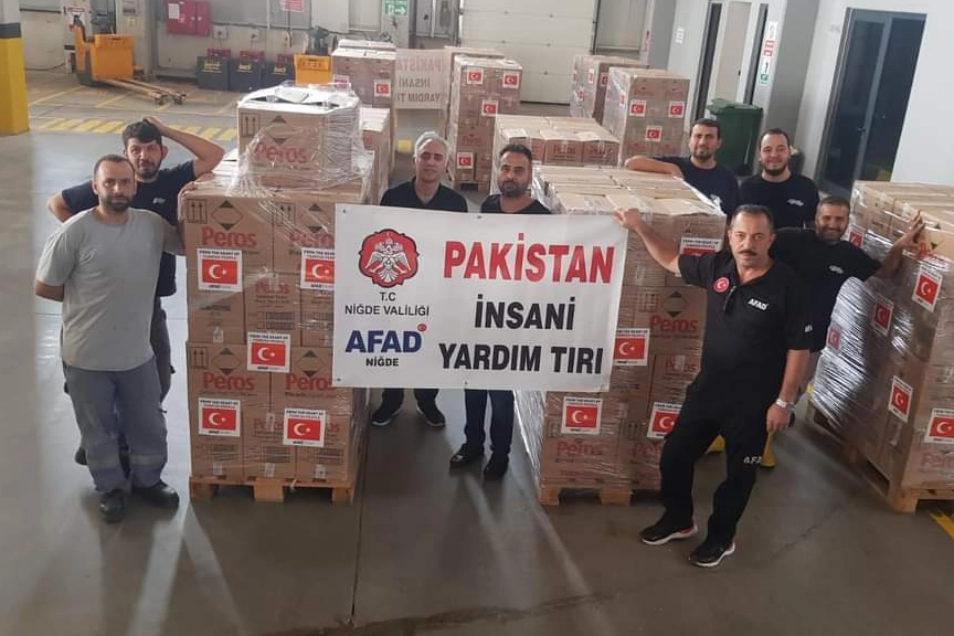 Pakistan'da yaşanan sel felaketi dolayısıyla İçişleri Bakanlığı tarafından başlatılan yardım kampanyası kapsamında, Niğde Valiliği koordinesinde 2 bin koli gıda ve 400 koli hijyen malzemesi Niğde'den Pakistan'a gitmek üzere yola çıktı.