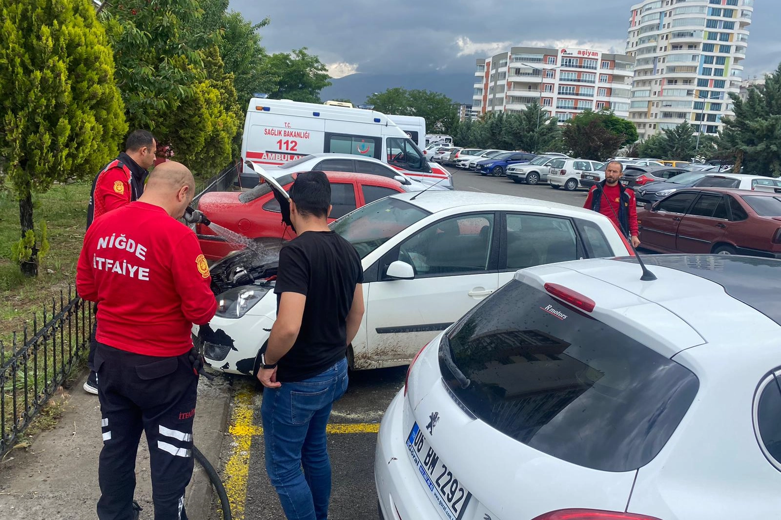 Niğde Ömer Halisdemir Eğitim ve Araştırma Hastanesi'nin poliklinik otopark alanında bulunan bir araç henüz bilinmeyen bir nedenle park halindeyken alev aldı. İhbar üzerine olay yerine gelen Niğde Belediyesi İtfaiye Müdürlüğü ekipleri alev alan aracı söndürerek yangını büyümeden kontrol altına aldı. Soğutma çalışması yapılan araçta maddi hasar meydana geldi.