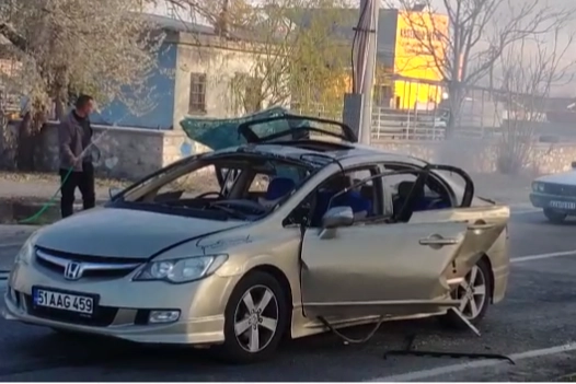 Araçta patlamanın etkisiyle kısa süreli yangın çıktı. Yangına çevredeki vatandaşlar yangın tüpüyle müdahale etti.