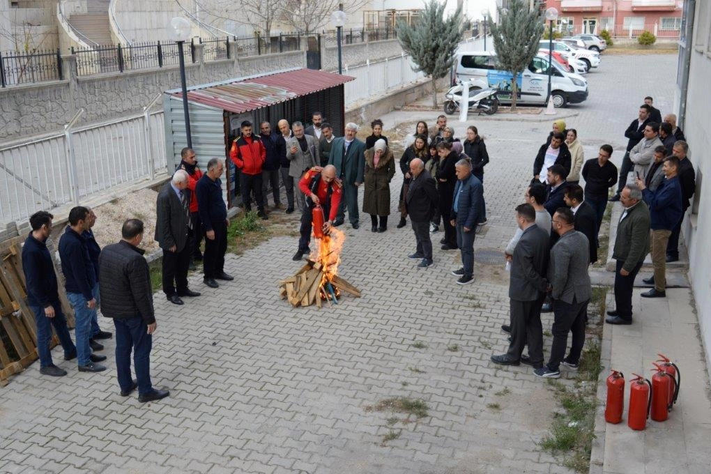 Tatbikat kapsamında, olayı ilk gören kişinin reaksiyonu, işyeri çalışanlarının acil durum ekiplerinde olmayanların binayı tahliye yollarından terk edişi ve toplanma alanlarına gidişleri, yangından korunma malzeme istasyonunda yangından korunma kıyafeti kuşanacak acil durum personelinin temiz hava cihazı ve teçhizat kuşanması odaya gelişleri ve teçhizat odasından ayrılışları, acil durum ekiplerinin mevcut acil duruma müdahale edişleri, acil durum koordinatörünün acil durumun tüm aşamalarındaki davranışı ve aksiyonları ve belirlenecek personelin portatif söndürücüleri kullanarak söndürme pratiği kazanmaları konularını içeren uygulama gösterilerek anlatıldı ve tatbikatı yapıldı. Tatbikat senaryosu gereği oluşturulan yangın, kurum personelinin katılımıyla söndürüldü.